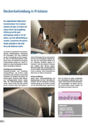 Modewa GmbH Zugerstrasse 6, 6330 Cham Giselistrasse 2, 6006 Luzern Telefon +41 79 219 64 23 E-Mail info@modewa.ch www.modewa.ch 514 Deckenbekleidung in Präzision Der eidgenössisch diplomierte Deckenmonteur Tom Krasniqi arbeitet seit über 20 Jahren auf seinem Beruf. Die langjährige Erfahrung und die gute Auftragslage nutzte er vor elf Jahren, um sich selbstständig zu machen. Zusammen mit seinem Bruder gründete er die erste Firma die Modewa GmbH. Der Betrieb ist spezialisiert auf Deckenbe- kleidung, Wandbekleidung, Brandschutz und Innenausbau. Das Team, bestehend aus dem Firmengründer und fünf Angestell- ten, führt für Generalunternehmen, Archi- tekten, Planer und Bauherren in der ganzen Deutschschweiz Aufträge aus. Aktuell ar- beiten sie an einem Grossprojekt an der Uni Basel und parallel bei SwissLife. Vielfältige Deckenverkleidung Deckenverkleidungen sind ästhetische Raumgestaltungen. Sie bestehen häufig aus Blechen oder Aluminium, da sich diese Materialien hervorragend zum Kühlen und Wärmen eignen. Die ganzen Kühl-, Wärme- und Lüftungselemente können optimal unter den Deckenverkleidungen verlegt werden. Damit sind sie nicht mehr sichtbar und der Luftzug im Raum nicht spürbar. In diese Verkleidungen können auch problem- los Licht- und Soundsysteme integriert wer- den. Das Team der Modewa GmbH ist für die Verbauung sämtlicher Systeme Ihr Fachmann. Auch den optischen Wünschen sind praktisch keine Grenzen gesetzt. Nebst der breiten Farb- und Formpalette ist es auch möglich, Deckenverkleidungen mit Prints zu versehen. Damit verwandeln sich Räume fast von alleine in Kunstwerke. Präzise Ausführung Häufig finden Deckenverkleidungen bei Gewerbebauten, bei Rest. oder privat An- wendung. Bei der Verbauung ist höchste Präzision gefragt, da die Elemente teilweise auf den Hundertstel genau zugeschnitten sind. Hier kommt die exakte Arbeitsweise des fachmännischen Modewa-Teams zum Tragen. Es ist bekannt für seine Genauigkeit und Zuverlässigkeit. Die Equipe rund um Tom Krasniqi liefert höchste Qualität und hält Termine zu hundert Prozent ein.