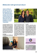 Miteinander statt gemeinsam einsam «Jenseits von Richtig und Falsch liegt ein Ort, dort tref- fen wir uns.» Dieser Satz auf ihrter Webseite fasst zusam- men, wofür die Praxis Dialog in Kreuzlingen steht: Die beiden Therapeuten Katalin Kermendi- Mayer und Marcel Möri unter- stützen Paare in ihrer jeweils einzigartigen und wertvollen Paarbeziehung zu zweit als Therapeutenpaar. Die gemeinsame Begegnung im Viererset- ting ermöglicht unbeschwerte Formen der Kommunikation, die dem Paar neue Wege öffnet. Beziehungen sind Begegnungen, daher können sie nur in der Gegenwart statt- finden. «Wenn Paare das wirklich erkennen und beginnen, sich selbst und einander im Jetzt wahrzunehmen, wird die Kommunika- tion frei von Vergangenheit, Erwartungen und Projektionen. Das schafft Raum und kann enorme Potenziale freisetzen für ein erfülltes Miteinander», erklärt Marcel Möri. Begegnungen Die ausgebildete dipl. Psychologin und Psychotherapeutin Katalin Kermendi-Mayer Mit Leichtigkeit und Offenheit: Katalin Kermendi-Mayer und Marcel Möri bietet neben der Paarberatung auch Einzel- therapien an. Dabei kommt eine Vielfalt von Methoden zur Anwendung, um die indivi- duellen Heilungsprozesse zu unterstützen. Dazu gehören u. a. EMDR-Therapie, Hyp- nose, Egostate-Therapie sowie körperpsy- chotherapeutische Methoden und Entspan- nungsverfahren. Der Fokus liegt jedoch auch hier auf der Begegnung und dem gemein- samen Erkennen. Begegnen und Erkennen war schon immer Teil ihres Lebensweges, wie sie sagt: «Ob als Lehrerin mit Kindern in ihrer Echtheit, als Schauspielerin in ver- schiedenen Rollen und Gefühlen oder nun als Therapeutin mit dem Menschen in seiner Gesamtheit.» Kreativität Marcel Möri ist selbstständiger Grafiker, Coach und Paartherapeut. In seiner Tätig- keit als Paartherapeut nutzt er seine Erfah- rung, um in den Begegnungen die einzelnen Fragmente mit Kreativität und Leichtigkeit neu und als Ganzes zu ordnen und so die Paarbeziehung als ein ureigenes Kunstwerk zu schaffen. Die beiden Therapeuten in der Praxis Dialog schaffen eine neue Form der Paarberatung: Das Paar lernt mit Leichtig- keit und Offenheit, ohne Ängste und Sorgen, auch schwierigen Themen zu begegnen, um in einem kreativen Miteinander alle Farben der Paarbeziehung wieder geniessen zu können. Praxis Dialog Bodanstrasse 8, 8280 Kreuzlingen Telefon +41 71 671 10 35 E-Mail info@praxisdialog.ch www.praxisdialog.ch Katalin Kermendi-Mayer bei einer Therapiesitzung in ihrer Praxis Dialog 149