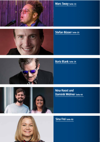 Marc Sway Seite 10 Stefan Büsser Seite 20 Boris Blank Seite 34 Nina Roost und Dominik Widmer Seite 44 Sina Frei Seite 90 5