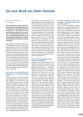 Eigentlich nichts ausser Neugier, die Be- reitschaft, sich auf Neues einzulassen und diese neuen Erlebnisse nicht mit bereits gemachten Erfahrungen zu vergleichen. Diese Art Musik lebt nicht von bekannten Akkorden, sie lädt nicht ein zum Wippen, Schunkeln oder Tanzen. Schon eher zum Abenteuer, einen akustischen roten Faden aufzunehmen, seinem Weg zu folgen, zu hören, wie er sich durch die unterschiedli- chen Instrumente des Orchesters verändert, seine Verknüpfung mit anderen Fäden zu begreifen und das musikalische Klangge- webe wachsen zu hören, das der Kompo- nist aus seiner inneren Vorstellung in No- tenschrift festhielt. Wenn man zum ersten Mal mit neuer Musik konfrontiert wird, kann sie tatsächlich verwirrend klingen, wie eine fremde Sprache, die man zum ersten Mal hört und daher nicht versteht. Besucht man aber wiederholt Konzerte, offenbaren sich mit zunehmendem Verständnis Klangbilder, die ihre eigene Schönheit mit sich bringen. Gerade heute gibt es so viele unterschiedli- che Arten von zeitgenössischer Musik, dass sich genaues Hinhören noch nie so gelohnt hat wie jetzt für jene Freunde der Klassik, die grundsätzlich offen sind für Neues.