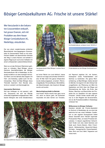 Wer hierzulande in den bekann- ten Grossverteilern einkauft, hat grosse Chancen, sich mit Produkten aus dem Hause Bösiger Gemüsekulturen AG, Niederbipp, einzudecken.