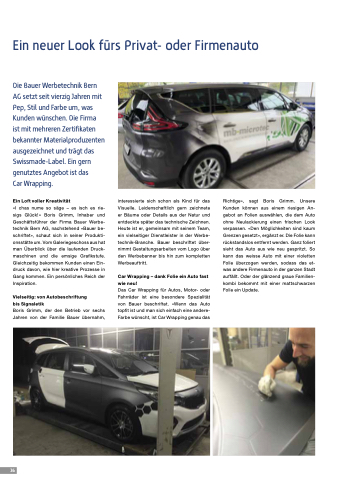 Das Car Wrapping für Autos, Motor- oder Fahrräder ist eine besondere Spezialität von Bauer beschriftet. «Wenn das Auto topfit ist und man sich einfach eine andere- Farbe wünscht, ist Car Wrapping genau das