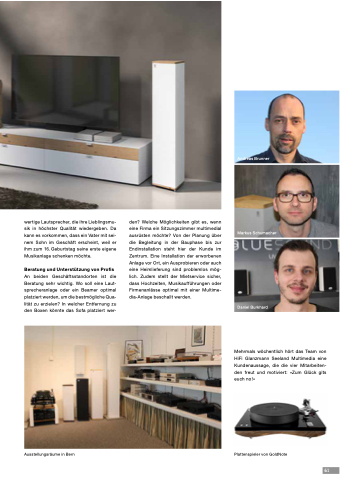 An beiden Geschäftsstandorten ist die Beratung sehr wichtig. Wo soll eine Laut- sprecheranlage oder ein Beamer optimal platziert werden, um die bestmögliche Qua- lität zu erzielen? In welcher Entfernung zu den Boxen könnte das Sofa platziert wer-