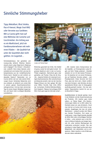 Tippy Mokalbari, Bhut Jolokia, Raz el Hanout, Magic Dust BBQ oder Verveine aus Sardinien: Mit La Cucina geht man auf eine Weltreise der Gerüche und Geschmäcker. Am Anfang war es ein Marktstand, jetzt ein Familienunternehmen mit meh- reren Filialen – die Qualität hat unter der Quantität aber nicht gelitten. Im Gegenteil ...