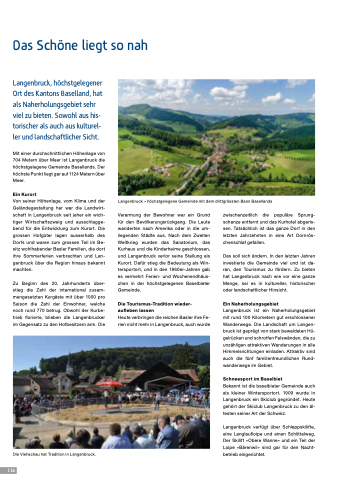 Langenbruck, höchstgelegener Ort des Kantons Baselland, hat als Naherholungsgebiet sehr viel zu bieten. Sowohl aus his- torischer als auch aus kulturel- ler und landschaftlicher Sicht.