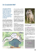 Wölfe besiedeln viele verschiedene Le- bensräume, von offenen Graslandschaften bis zu dichten Wäldern sind sie überall zu finden. Abhängig vom Nahrungsangebot jagen sie einzeln oder in Rudeln. Die Beute variiert je nach Gegend und Jahreszeit von Kleinsäugern wie Mäusen bis zu Huftieren wie Hirsch, Elch und Wisent. Wölfe sind Kommunikationsspezialisten. Durch Ge- sichtsausdruck, Körpersprache und eine Reihe von Lauten interagieren sie ständig miteinander.