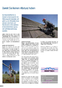 «Wir sind konzessioniert, Absturzsicherun- gen zu planen und zu montieren», erklärt Gabriel Cueni. Von Permanent-Geländern bis hin zu Seilsicherungssystemen, Ein- zelanschlagpunkten, auch kombiniert mit persönlicher Schutzausrüstung, bietet Rooftech AG alles an, was mit Absturzsi- cherung zu tun hat. Die Rooftech-Spezia- listen kümmern sich auch um die Wartung der entsprechenden Absturzsicherungs- massnahmen. Schliesslich wird der Bau- herr durch Rooftech AG mit den wichtigen und relevanten Sicherheitsdokumenten ausgerüstet und ist somit auf der sicheren Seite.