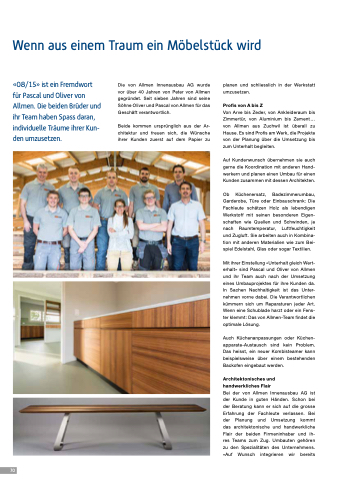 Die von Allmen Innenausbau AG wurde vor über 40 Jahren von Peter von Allmen gegründet. Seit sieben Jahren sind seine Söhne Oliver und Pascal von Allmen für das Geschäft verantwortlich.