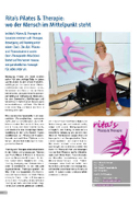 Bewegung, Fitness und Sport spielten schon früh eine wichtige Rolle im Leben von Rita Dünki. Zu den liebsten Freizeitbe- schäftigungen der dynamischen Pilates- und Fitnesstrainerin zählten Karate, Tennis, Schwimmen und Aerobic – bis sie Pilates kennenlernte. Das systematische Ganzkör- pertraining zur Kräftigung der Muskulatur, bei dem Atemtechnik, Kraftübungen und Stretching in harmonischen Bewegungen ineinanderfliessen, eröffnete Rita Dünki einen neuen Weg, um Körper und Geist in Einklang zu bringen.