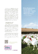 Damit die hohen Ansprüche an die Aufzucht von den zahlreichen Partnerbauern erfüllt werden können, beraten Experten der frifag märwil ag diese in allen Bereichen. Es sei ein Miteinander, so Schmal, um die Standards weiter steigern zu können. Dies sei essentiell, gerade da die Nach frage stetig zunehme. Geflügelfleisch ist wegen des geringen Fettgehalts und des hohen Eiweiss anteils beliebt, nicht nur bei Sportlern oder für den Grillabend im Sommer.