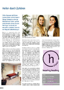 Gemeinsam können die beiden einfühlsa- men Frauen ein breites Gebiet abdecken. Sie arbeiten getrennt – und doch zusam- men. «Was Ariane aus den Augen abliest, kann ich therapieren», sagt Céline. Die Schwestern ergänzen sich bestens. Auch in ihrer Philosophie, nach der sie ihre Praxis benannt haben: hearing und healing, oder eben h-2. «Das Allerwichtigste ist für uns, dass wir den Leuten zuhören, die zu uns kommen», sagt Ariane. Sie ist überzeugt, dass es vielen Menschen besser gehen würde, wenn ihnen jemand richtig Gehör schenken würde. «Bereits da fängt die Selbstheilung unserer Meinung nach an.»