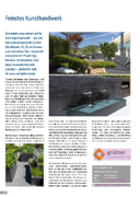 Standardprodukten – die qualitativ allesamt hochstehend sind – auch eine starke Nach- frage nach Unikaten. Etwa geschwungene Pflanztröge oder extravagante Wasser- spiele. «Wir tüfteln fortwährend an neuen Ideen, bleiben nie stehen» – zur Verblüffung der Mitbewerber und zur Freude der Kunden. «Letzteres ist natürlich das Wichtigste.»