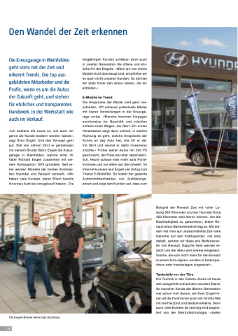 «Ich bediene die Leute so, wie auch ich gerne als Kunde bedient werden würde», sagt Sven Engeli. Und das Konzept geht auf. Seit vier Jahren führt er gemeinsam mit seinem Bruder Björn Engeli die Kreuz- garage in Weinfelden, welche einst ihr Vater Richard Engeli zusammen mit sei- nem Kompagnon 1979 gründete. Seit je- her werden Modelle der beiden Automar- ken Hyundai und Renault verkauft. «Wir haben viele Kunden, deren Eltern bereits ihr erstes Auto bei uns gekauft haben». Die