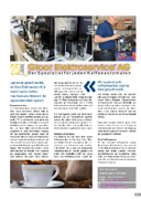Die Kaffeemaschinen werden von Hans- Peter Gloor kontrolliert, defekte Teile er- setzt oder repariert. Danach werden sie von Brigitta Bizzarri sorgfältig entkalkt und ge- reinigt. Für die schonende, aber gründliche Entkalkung hat Hans-Peter Gloor ein eigenes Entkalkungsmittel entwickelt und patentiert, das auf einer Milch-Zitronen-Säurebasis aufgebaut ist. Dank nachhaltigem Umgang mit den bestehenden Geräten spart der Konsument nicht nur Geld und Ressourcen, sondern vermeidet unnötigen Abfall und das frühzeitige Ersetzen des Gerätes. Das wiede- rum kommt der Umwelt zu gut. Deshalb unser Slogan «Wir reparieren CO2-neutral». Gloor Elektroservice AG betreibt eine moderne, gut ausgerüstete, nach neusten Stand- ards geführte Werkstatt. Damit können