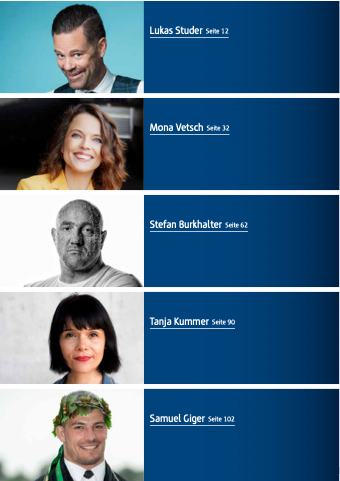 Lukas Studer Seite 12 Stefan Burkhalter Seite 62 Tanja Kummer Seite 90 Samuel Giger Seite 102 Mona Vetsch Seite 32 5