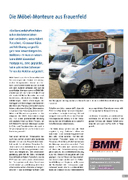 Meist handelt es sich um Grossbetriebe wie Versicherungen oder Banken mit umfang- reichen Bürogebäuden. Grosse und klei- nere Büromöbelverkäufer aus der Schweiz und dem Ausland verlassen sich auf die zuverlässige Montage durch die BMM Mit- arbeiter vor Ort. Sie sind spezialisiert auf alle markterhältlichen Neumöbel wie auch bestehendes, altbewährtes Mobiliar. Neu- möbilierungen, interne Umstellungen, De- montagen und Remontagen des bestehen- den Mobiliars, Planung und Ausführung für interne und externe Umzüge, Aktenumzüge, Umweltgerechte Entsorgung des alten Mo- biliars und Reparaturen gehören zu den Aufgaben der BMM Büromöbelmontage AG. «Wir bieten professionelle Beratung und saubere Arbeit zu fairen Preisen», er- klärt Robert Purtschert, «Montagen werden in Klein- und Grossbetrieben wie auch in Verwaltungsgebäuden von Gemeinden und Kantonen gemacht.»