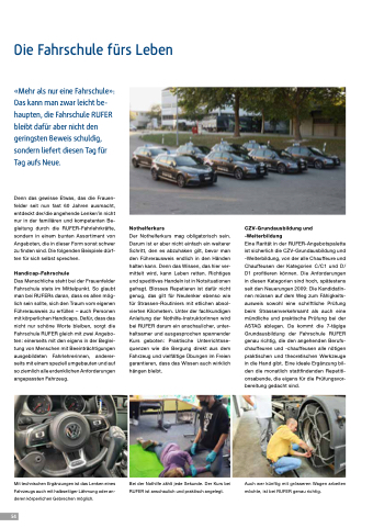 «Mehr als nur eine Fahrschule»: Das kann man zwar leicht be- haupten, die Fahrschule RUFER bleibt dafür aber nicht den geringsten Beweis schuldig, sondern liefert diesen Tag für Tag aufs Neue.