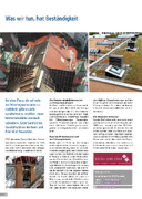 Häufig wird die Firma bei Sanierungen denkmalgeschützter Gebäude engagiert. «Die Herausforderung dabei ist, die Funk- tionalität, Langlebigkeit, das Einhalten heu- tiger Normen, die Ästhetik und die Kosten in Balance zu halten», erklärt Dachdecker- meister Sandro Erné, «ein Garant für unse- ren Erfolg sind unsere engagierten langjäh- rigen Mitarbeiter, die Aufträge mit Interesse und Leidenschaft ausführen. Sie sind für die Kundschaft und den eigenen Betrieb Gold wert.» Daraus resultiert ein schöner Aspekt der Arbeit: «Wenn ich durch die Region fahre und die vielen Gebäude sehe, an denen wir gearbeitet haben, spüre ich: Was wir tun, hat Beständigkeit. Wir sind nah beim Kunden und versuchen immer
