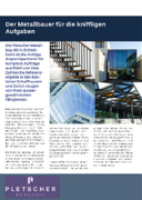 Komplexe Konstruktionen aus Stahl und Glas sind die Spezialität der Plet- scher Metallbau AG in Schleitheim – seien dies Erdgeschoss- und Dach- verglasungen, Türen, Tore, Treppen, Geländer, Balkonanlagen, Hallen, Fussgängerbrücken oder Über- dachungen. Das Metallbauunter- nehmen führt sowohl Neubauten als auch Restaurationen, Sanierun- gen, Erneuerungen und Erweiterun- gen aus – und dies stets gemäss den Wünschen der Kunden.