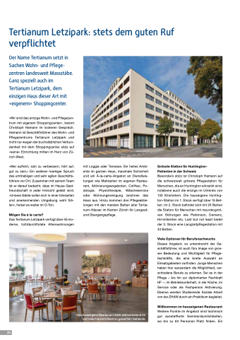 Der Name Tertianum setzt in Sachen Wohn- und Pflege- zentren landesweit Massstäbe. Ganz speziell auch im Tertianum Letzipark, dem einzigen Haus dieser Art mit «eigenem» Shoppingcenter.