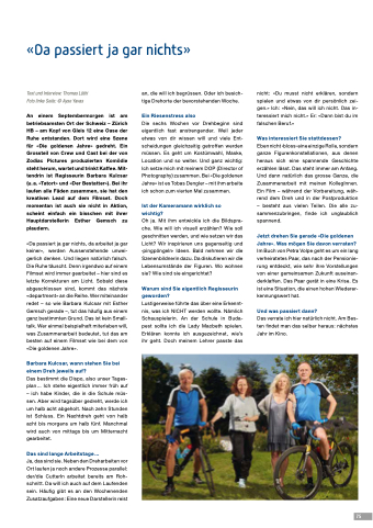 Eben nicht ‹bloss› eine einzige Rolle, sondern ganze Figurenkonstellationen, aus denen heraus sich eine spannende Geschichte erzählen lässt. Das steht immer am Anfang. Und dann natürlich das grosse Ganze, die Zusammenarbeit mit meinen KollegInnen. Ein Film – während der Vorbereitung, wäh- rend dem Dreh und in der Postproduktion – besteht aus vielen Teilen. Die alle zu- sammenzubringen, finde ich unglaublich spannend.