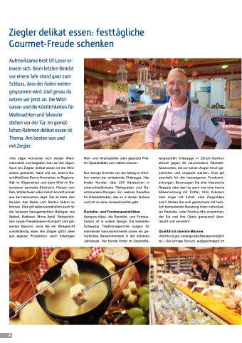 Aufmerksame Best Of-Leser er- innern sich. Beim letzten Bericht vor einem Jahr stand ganz zum Schluss, dass der Faden weiter- gesponnen wird. Und genau da setzen wir jetzt an. Die Wild- saison und die Köstlichkeiten für Weihnachten und Silvester stehen vor der Tür. Im gemüt- lichen Rahmen delikat essen ist Thema. Am besten von und