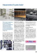 Ob für Industrie, Gewerbe oder private Heimwerker und Bastler: Die Egli Federfabrik AG bietet dank ihrem breiten Sortiment und kundenspezi- fischen Einzelanfertigungen für jede Anwendung die garantiert richtige Feder.