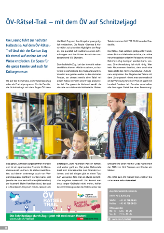 Die Lösung führt zur nächsten Haltestelle: Auf dem ÖV-Rätsel- Trail lässt sich der Kanton Zug für einmal auf andere Art und Weise entdecken. Ein Spass für die ganze Familie und auch für Kulturgeniesser.