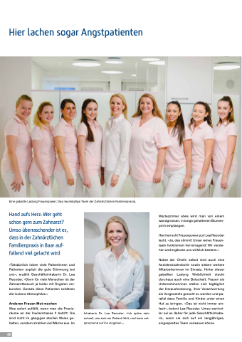 Hand aufs Herz: Wer geht schon gern zum Zahnarzt? Umso überraschender ist es, dass in der Zahnärztlichen Familienpraxis in Baar auf- fallend viel gelacht wird.
