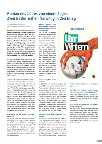 Jetzt ist Urs Zürcher Schriftsteller und kon- zentriert sich seit einiger Zeit mit zunehmen- dem Erfolg auf diese ‹Lücken›. Er lotet und weitet diese aus (Friedrich Schiller tat in sei- nem «Wilhelm Tell» übrigens genau das Glei- che). So startet Zürchers WG-Dramedy «Die Innerschweizer» vor dem Hintergrund des Kalten Krieges, um dann ins Fantastische abzudriften. Sein neuer, packender Roman «Überwintern» bleibt im Hier und Jetzt, be- gleitet zwei junge Basler in die Ostukraine, wo sie als Söldner anheuern. Die beiden sind erfunden, der zeitgeschichtliche Kon- text ist sehr real. «Überwintern» wurde übri- gens von der NZZ am Sonntag zum besten Roman des Jahres erkoren.