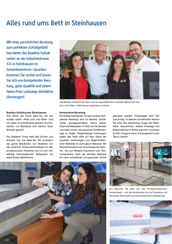 Das Motto der Firma Bawi-Tex AG aus Goldau lautet: «Alles rund ums Bett». Und mit «alles» ist wirklich alles gemeint. Der Pro- duktion von Matratzen sind nämlich kaum Grenzen gesetzt.