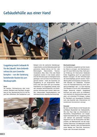 Ob Neubau, Dachsanierung oder Innen- ausbau, Steildach oder Flachdach: Guggis- berg ist der Dachtechnik-Profi für die Re- gion Bern-Mittelland. Bei Steildächern zum