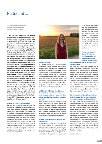 ...ist der Titel einer CD von Arlette Wismer, aber auch Synonym für die stei- le Karriere der jungen Luzernerin. 1999 in Rickenbach geboren, ist Arlette die jüngste von fünf jodelnden Schwestern, gefördert von ihrer jodelnden Mutter Priska Wismer und von ihrer Grosstante, der prominenten Jodelkoryphäe Marie- Theres von Gunten. Wen wundert’s, dass diese Marinade eine Jodlerin her- vorbrachte, die heute als Spitzentalent der Volksmusik gilt? Als Vierjährige trat sie dem Chinder-Jodlerchörli Geuensee bei. Mit sechs Jahren nahm sie Violin- unterricht, später kam das Klavier dazu. 2013 holte sie sich beim Folklorenach- wuchs-Wettbewerb den Gesamtsieg in der Sparte Jodeln. Die Matura schloss sie ab mit einer Arbeit über das exoti- sche Thema Jodeln, gefolgt vom Stu- dium der Gesellschafts- und Kommu- nikationswissenschaften. Aktuell tritt sie in verschiedenen Formationen auf. Stets mit dabei ist Doris Erdin, welche Arlette mit dem Akkordeon begleitet. Weiter ist die junge Jodlerin auch mit dem Familienchor Wismer, mit dem Jodlerchörli Geuensee oder mit ihrem Ensemble (Gesang, Violine, Akkordeon und Kontrabass) zu hören. Für die Platt- form «SRF Volksmusik» moderiert sie das Format «Wismer gfallt».