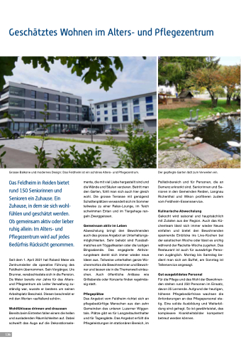 Palliativbereich und für Personen, die an Demenz erkrankt sind. Seniorinnen und Se- nioren in den Gemeinden Reiden, Langnau Richenthal und Wikon profitieren zudem vom Feldheim-Essensservice.