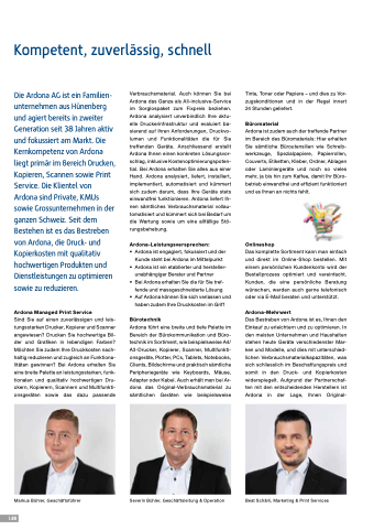 Die Ardona AG ist ein Familien- unternehmen aus Hünenberg und agiert bereits in zweiter Generation seit 38 Jahren aktiv und fokussiert am Markt. Die Kernkompetenz von Ardona liegt primär im Bereich Drucken, Kopieren, Scannen sowie Print Service. Die Klientel von Ardona sind Private, KMUs sowie Grossunternehmen in der ganzen Schweiz. Seit dem Bestehen ist es das Bestreben von Ardona, die Druck- und Kopierkosten mit qualitativ hochwertigen Produkten und Dienstleistungen zu optimieren sowie zu reduzieren.