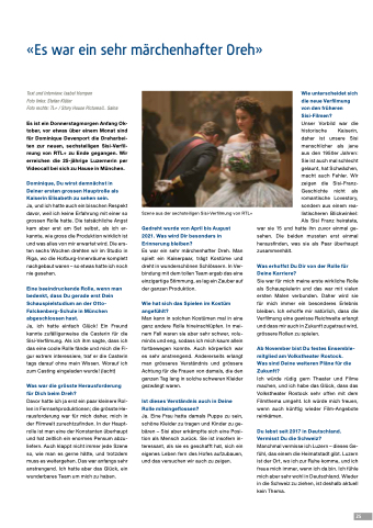 Es ist ein Donnerstagmorgen Anfang Ok- tober, vor etwas über einem Monat sind für Dominique Devenport die Dreharbei- ten zur neuen, sechsteiligen Sisi-Verfil- mung von RTL+ zu Ende gegangen. Wir erreichen die 25-jährige Luzernerin per Videocall bei sich zu Hause in München.