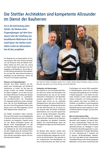Sei es die Aufstockung eines Spitals, der Neubau eines Flugzeughangars auf dem Euro- airport oder die Schaffung von bezahlbarem Wohnraum in der Stadt Basel: Die Stettler Archi- tekten GmbH als Allrounderin hat all dies projektiert.
