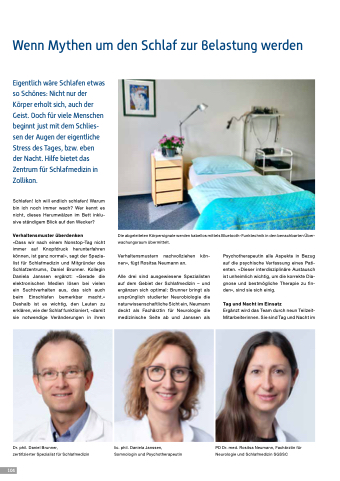 Eigentlich wäre Schlafen etwas so Schönes: Nicht nur der Körper erholt sich, auch der Geist. Doch für viele Menschen beginnt just mit dem Schlies- sen der Augen der eigentliche Stress des Tages, bzw. eben der Nacht. Hilfe bietet das Zentrum für Schlafmedizin in Zollikon.