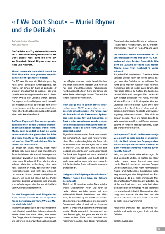 Die Delilahs aus Zug stehen mittlerweile im 17. Jahr ihrer Bandgeschichte. «If We Don’t Shout» hiess 2008 die erste EP. Vor-Shouterin Muriel Rhyner stand uns Rede und Antwort.