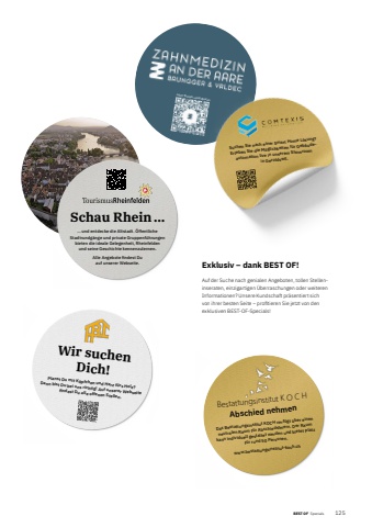 BEST OF BEST OF Specials 1252Jetzt Termin vereinbarenAbschied nehmenDas Bestattungsinstitut KOCH verf%u00fcgt %u00fcber einen neutralen Raum f%u00fcr Abschiedsfeiern. Der Raum kann individuell gestaltet werden und bietet Platz f%u00fcr rund 50 Personen.www.bestattungsinstitut-koch.chSchau Rhein %u2026%u2026 und entdecke die Altstadt. %u00d6ffentliche Stadtrundg%u00e4nge und private Gruppenf%u00fchrungen bieten die ideale Gelegenheit, Rheinfelden und seine Geschichte kennenzulernen.Alle Angebote fi ndest Du auf unserer Webseite. Exklusiv %u2013 dank BEST OF!Auf der Suche nach genialen Angeboten, tollen Stelleninseraten, einzigartigen %u00dcberraschungen oder weiteren Informationen? Unsere Kundschaft pr%u00e4sentiert sich von ihrer besten Seite %u2013 profi tieren Sie jetzt von den exklusiven BEST-OF-Specials! Bestattungsinstitut K O C HWir suchen Dich!Planst Du mit K%u00f6pfchen und Herz f%u00fcrs Holz? Dann bist Du bei uns richtig! Auf unserer Webseite fi ndest Du alle offenen Stellen.Suchen Sie nach einer Smart Home L%u00f6sung? Erleben Sie die M%u00f6glichkeiten f%u00fcr Geb%u00e4ude -automation live in unserem Showroom in Geroldswil.
