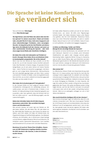 224 1 BEST OF BEST OF PromiDie Sprache ist keine Komfortzone, sie ver%u00e4ndert sichText und Intervie Felix EngeliFotos: Maia WackernagelWo liegt Heimat, wenn die F%u00e4den des Lebens %u00fcber den Globus spinnen? In seinem neuen Buch %u00abTabak und Schokolade%u00bb erkundet Martin R. Dean, Sohn einer Aargauerin und eines indischst%u00e4mmigen Trinidaders, seine verzweigten Wurzeln. Im Gespr%u00e4ch preist der Schriftsteller und ehemalige Lehrer die bildende Kraft der Literatur und warnt vor einer zunehmenden Verrohung der Sprache%u00a0 %u2013 aber nicht etwa wegen Social Media oder k%u00fcnstlicher Intelligenz.Sie haben Ihre ersten drei Lebensjahre auf Trinidad verbracht. Als junger Mann haben Sie an verschiedenen Orten im Ausland gelebt und gearbeitet. Wo ist Ihre Heimat?Wenn man sich die Heimat als Haus vorstellt, ist die Stube der Ort, wo ich den Grossteil meiner Kindheit verbracht habe. Also Menziken im Kanton Aargau. Ein grosses Zimmer belegt Basel, wo ich seit vielen Jahren mit meiner Familie lebe %u2013 meine Tochter ist inzwischen ausgezogen. Und dann gibt es noch einige kleine K%u00e4mmerchen, Sehnsuchtsorte, die mich ebenfalls gepr%u00e4gt haben wie Rom, Paris, London und nat%u00fcrlich Trinidad. Im Keller unten ist es geheimnisvoll. Das sind Orte, wo es einen vielleicht ein bisschen gegruselt hat, aber wo man wieder hin will. Was haben Sie im Ausland gesucht? Und gefunden? In der Schweiz f%u00fchlte ich mich aufgrund meines indischtrinidadischen Hintergrunds nie vollst%u00e4ndig zuhause. Ich wollte wissen, wie man in Frankreich lebt, in Italien, in der Karibik. Ich habe jahrelang mit dem Gedanken gespielt, auszuwandern, aber dann gemerkt, dass die Schweiz halt einfach ein tolles Land ist %u2013 was die Bildung angeht, was die Leserschaft angeht.Neben dem Schreiben haben Sie 28 Jahre lang am Gymnasium unterrichtet. Was vermitteln Sie jungen Lesern und Schreiberinnen?Wie verr%u00fcckt Literatur ist! Lesen regt zum Denken an. Wir alle haben Gef%u00fchle. Wir alle haben Wut. Wir alle haben Liebe. Aber bilde Dein Denken aus, dann kannst Du besser verstehen, auch Dich selbst. Ich habe mit Sch%u00fcler:innen mit Migrationshintergrund Gottfried Keller gelesen. Zum Beispiel %u00abPankraz, der Schmoller%u00bb, der in Afrika einen L%u00f6wen besiegt und als heiterer, aufgeschlossener Mensch zur%u00fcckkommt. Da entstehen extrem spannende Diskussionen. Auch da r%u00fcber, was Schweizerisch ist und was nicht. Und %u00fcber Rassismus.Rassismus ist auch ein Thema Ihres Schaffens. Zusammen mit SRF-Moderatorin Ang%u00e9lique Beldner brachten Sie 2021 das Buch %u00abDer Sommer, in dem ich Schwarz wurde%u00bb heraus.Aufgewachen: MenzikenWohnort: Basel, wo er studiert und unterrichtet hatWeb: www.mrdean.chIn K%u00fcrze: Martin R. Dean ist ein Schweizer Schriftsteller und Essayist. Wichtige Werke sind %u00abDie verborgenen G%u00e4rten%u00bb, %u00abMeine V%u00e4ter%u00bb, %u00abTabak und Schokolade%u00bb und %u00abDer Sommer, in dem ich Schwarz wurde%u00bb.Ich habe selber Rassismus erlebt und sah ihn bei meinen Sch%u00fcler:innen, von denen 30%u2013 40% eine Migrationsgeschichte haben. Die haben teilweise massiv unter Rassismus gelitten, das hat mich beelendet. Rassismus heisst, dass man einen Menschen behandelt, als w%u00e4re er zweiter Klasse. Dadurch kann er sich nicht entfalten. Dadurch kann er nicht aufbl%u00fchen. Ich wollte mich dagegen engagieren.In Zeiten von WhatsApp, Twitter und TikTok: Besorgt Sie der derzeitige Wandel der Sprache? Die Sprache ist keine Komfortzone, sie ver%u00e4ndert sich mit dem Gebrauch. Nat%u00fcrlich ist es schade, wenn Schweizer Dialektw%u00f6rter wie %u00abg%u00e4ch%u00bb oder %u00abt%u00fcppig%u00bb verloren gehen. Gleichzeitig halten englische W%u00f6rter Einzug ins Deutsche, was vor allem Social Media, aber auch Branchen wie dem Bankwesen geschuldet ist. Der Wandel der Sprache soll seinen Lauf nehmen, solange der Gebrauch nicht diskriminierend ist. Und da sehe ich heute das gr%u00f6ssere Problem.Was meinen Sie?Im %u00f6ffentlichen Diskurs fi ndet eine Sprachverrohung statt. Wenn ich J. D. Vance zuh%u00f6re, dann hat der f%u00fcr mich den Revolvergurt schon angeschnallt. Es vollzieht sich eine Reprimitivisierung im Umgang mit Mitmenschen, die auch auf der sprachlichen Ebene stattfi ndet. Vielleicht ist das der Anfang zu einem R%u00fcckgang ins Mittelalter. Zu einer Sprache, die sagt: Wir wollen als Mann wieder richtig die Sau raus lassen gegen%u00fcber den Frauen. Wir wollen als Weisse wieder richtig sagen k%u00f6nnen, wer hier der Chef ist. Und wenn mir jemand nicht passt, dann will ich den wieder richtig fertig machen k%u00f6nnen. Wenn es so weitergeht, schlagen wir uns in f%u00fcnf Jahren die K%u00f6pfe ein.Was macht k%u00fcnstliche Intelligenz (KI) mit der Literatur?Das ist eine schwierige Frage. Ich bef%u00fcrchte, dass KI in die Literatur einwandern wird. Man kann heute ganze Textstellen mit KI bauen lassen und sie %u00fcberarbeiten, ohne dass der Gebrauch von KI nachgewiesen werden kann. Und ich denke, dass gerade Leute, die keinen eigenen Stil haben oder keine eigenen Gedanken, ihre B%u00fccher mit KI schreiben werden oder dies bereits tun.