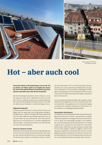 104 BEST OF BEST OF Region Biel Portrait xxxHot %u2013 aber auch cool Das Unternehmen betreut auch in der Stadt Bern Projekte.Eine breite Palette an Dienstleistungen rund um das Thema Heizen und K%u00fchlen geh%u00f6rt zum Angebot der Sanare AG. Durch seine pr%u00e4zise Arbeit im Unterhalt ist das Unternehmen ausserdem stets nahe bei der Kundschaft.Das fast 30-j%u00e4hrige Unternehmen %u00abheizt richtig ein%u00bb, wie es der Leitspruch schon verr%u00e4t. Tats%u00e4chlich k%u00fcmmert man sich aber nicht nur um W%u00e4rme, sondern auch um K%u00e4lte: Die Sanare AG ist n%u00e4mlich die perfekte Ansprechpartnerin f%u00fcr den W%u00e4rme-K%u00e4lte-Service im Seeland %u2013 und %u00fcber die Region hinaus. Regionale Kundschaft%u00abUnsere Kundschaft kommt zu einem grossen Teil aus der Region Biel, wir haben aber auch einige grosse Auftr%u00e4ge in der Region Bern%u00bb, erkl%u00e4rt Co-Inhaber Admir Brao. Neben ihm sitzt die zweite H%u00e4lfte der Gesch%u00e4ftsleitung: Arkent Isa. Gemeinsam haben sie das Unternehmen 2017 %u00fcbernommen. Damit kam es im Gesch%u00e4ft auch zu anderen tiefgreifenden Ver%u00e4nderungen. So zog die Sanare AG in neue R%u00e4umlichkeiten an der Industriestrasse ein. Arbeit mit moderner TechnikObwohl die Firma mittlerweile eine fast 30-j%u00e4hrige Geschichte hinter sich hat, arbeitet sie zukunftsorientiert: %u00abWir arbeiten nach neustem Stand der Technik, um optimale L%u00f6sungen f%u00fcr Heizung, Klima, Wasser und Energie zu fi nden.%u00bb Konkret sei das Unternehmen viel in der Sanierung t%u00e4tig, k%u00fcmmere sich aber auch um den Unterhalt von bestehenden L%u00f6sungen und um Neubauten. Die Vision bleibt unabh%u00e4ngig vom jeweiligen Auftrag dieselbe: Verantwortungsvoll sanierte und optimierte sowie mit Weitsicht konzipierte Anlagen und Systeme seien immer das Ziel. Auch die Umwelt wird ber%u00fccksichtigt: %u00abWir verstehen unsere Arbeit als Dienst gegen%u00fcber unserer Kundschaft, aber auch der Gesellschaft.%u00bb Dazu geh%u00f6re auch der schonende Umgang mit Ressourcen. Deshalb installiere das Unternehmen nur einwandfreie und langlebige Qualit%u00e4tsprodukte. Dynamisches UnternehmenGrunds%u00e4tzlich soll im Dialog die perfekte L%u00f6sung f%u00fcr die jeweilige Kundschaft erreicht werden: %u00abGemeinsam mit unseren Lieferanten gestalten wir massgeschneiderte, fortschrittliche und vor allem auch nachhaltige L%u00f6sungen in der Haustechnik.%u00bb Dass die Sanare AG individuell auf jede Art von Auftrag eingehen kann, verdankt sie nicht zuletzt ihrer %u00fcberschaubaren Gr%u00f6sse: %u00abWir kennen uns alle und sehen uns jeden Tag. So ist es auch m%u00f6glich, schnell zu reagieren, wenn es mal irgendwo richtig brennt%u00bb, erkl%u00e4rt Brao. Dies sei klar ein Vorteil gegen%u00fcber grossen Unternehmen der Branche, in denen sich die Mitarbeitenden zum Teil nicht alle pers%u00f6nlich kennen w%u00fcrden und die Abl%u00e4ufe deshalb etwas l%u00e4nger dauern k%u00f6nnten.