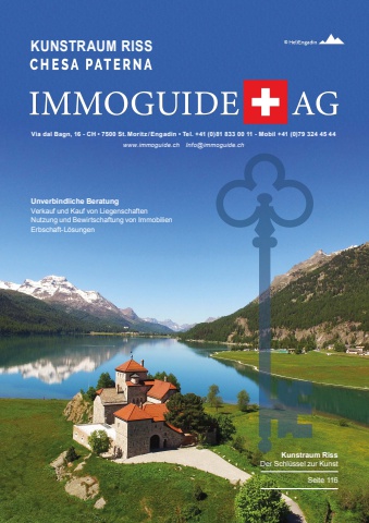 Via dal Bagn, 16 - CH %u2022 7500 St. Moritz%u200a/%u200aEngadin %u2022 Tel. +41 (0)81 833 00 11 - Mobil +41 (0)79 324 45 44www.immoguide.ch Info@immoguide.chKUNSTRAUM RISSUnverbindliche BeratungVerkauf und Kauf von LiegenschaftenNutzung und Bewirtschaftung von ImmobilienErbschaft-L%u00f6sungenKunstraum Riss Der Schl%u00fcssel zur KunstSeite 116
