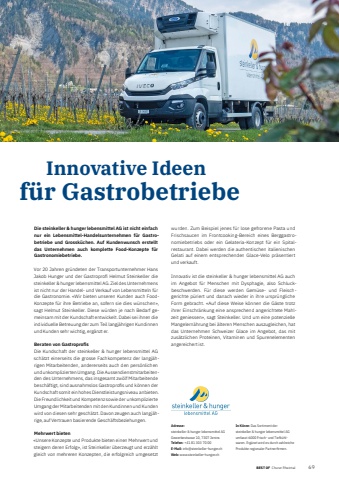 BEST OF BEST OF Churer Rheintal Portrait xxx 691 Innovative Ideen f%u00fcr GastrobetriebeAdresse:steinkeller & hunger lebensmittel AGGewerbestrasse 10, 7307 JeninsTelefon: +41 81 303 70 00E-Mail: info@steinkeller-hunger.chWeb: www.steinkeller-hunger.chIn K%u00fcrze: Das Sortiment der steinkeller & hunger lebensmittel AG umfasst 6000 Frisch- und Tiefk%u00fchlwaren. Erg%u00e4nzt wird es durch zahlreiche Produkte regionaler Partnerfi rmen.Die steinkeller & hunger lebensmittel AG ist nicht einfach nur ein Lebensmittel-Handelsunternehmen f%u00fcr Gastrobetriebe und Grossk%u00fcchen. Auf Kundenwunsch erstellt das Unternehmen auch komplette Food-Konzepte f%u00fcr Gastronomiebetriebe.Vor 20 Jahren gr%u00fcndeten der Transportunternehmer Hans Jakob Hunger und der Gastroprofi Helmut Steinkeller die steinkeller & hunger lebensmittel AG. Ziel des Unternehmens ist nicht nur der Handel- und Verkauf von Lebensmitteln f%u00fcr die Gastronomie. %u00abWir bieten unseren Kunden auch FoodKonzepte f%u00fcr ihre Betriebe an, sofern sie dies w%u00fcnschen%u00bb, sagt Helmut Steinkeller. Diese w%u00fcrden je nach Bedarf gemeinsam mit der Kundschaft entwickelt. Dabei sei ihnen die individuelle Betreuung der zum Teil langj%u00e4hrigen Kundinnen und Kunden sehr wichtig, erg%u00e4nzt er.Beraten von Gastroprofi sDie Kundschaft der steinkeller & hunger lebensmittel AG sch%u00e4tzt einerseits die grosse Fachkompetenz der langj%u00e4hrigen Mitarbeitenden, andererseits auch den pers%u00f6nlichen und unkomplizierten Umgang. Die Aussendienstmitarbeitenden des Unternehmens, das insgesamt zw%u00f6lf Mitarbeitende besch%u00e4ftigt, sind ausnahmslos Gastroprofi s und k%u00f6nnen der Kundschaft somit ein hohes Dienstleistungsniveau anbieten. Die Freundlichkeit und Kompetenz sowie der unkomplizierte Umgang der Mitarbeitenden mit den Kundinnen und Kunden wird von diesen sehr gesch%u00e4tzt. Davon zeugen auch langj%u00e4hrige, auf Vertrauen basierende Gesch%u00e4ftsbeziehungen.Mehrwert bieten%u00abUnsere Konzepte und Produkte bieten einen Mehrwert und steigern deren Erfolg%u00bb, ist Steinkeller %u00fcberzeugt und erz%u00e4hlt gleich von mehreren Konzepten, die erfolgreich umgesetzt wurden. Zum Beispiel jenes f%u00fcr lose gefrorene Pasta und Frischsaucen im Frontcooking-Bereich eines Berggastronomiebetriebs oder ein Gelateria-Konzept f%u00fcr ein Spitalrestaurant. Dabei werden die authentischen italienischen Gelati auf einem entsprechenden Glace-Velo pr%u00e4sentiert und verkauft.Innovativ ist die steinkeller & hunger lebensmittel AG auch im Angebot f%u00fcr Menschen mit Dysphagie, also Schluckbeschwerden. F%u00fcr diese werden Gem%u00fcse- und Fleischgerichte p%u00fcriert und danach wieder in ihre urspr%u00fcngliche Form gebracht. %u00abAuf diese Weise k%u00f6nnen die G%u00e4ste trotz ihrer Einschr%u00e4nkung eine ansprechend angerichtete Mahlzeit geniessen%u00bb, sagt Steinkeller. Und um eine potenzielle Mangelern%u00e4hrung bei %u00e4lteren Menschen auszugleichen, hat das Unternehmen Schweizer Glace im Angebot, das mit zus%u00e4tzlichen Proteinen, Vitaminen und Spurenelementen angereichert ist.