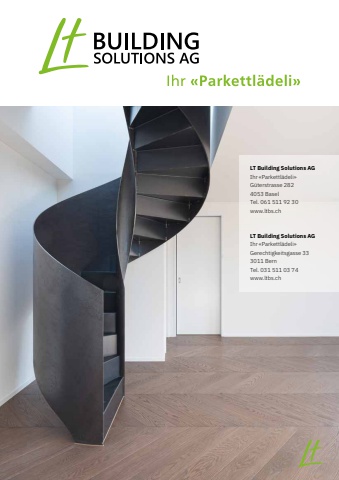 LT Building Solutions AGIhr %u00abParkettl%u00e4deli%u00bbG%u00fcterstrasse 2824053 BaselTel. 061 511 92 30www.ltbs.chLT Building Solutions AGIhr %u00abParkettl%u00e4deli%u00bbGerechtigkeitsgasse 333011 BernTel. 031 511 03 74www.ltbs.ch
