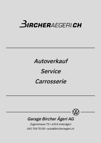 102 BEST OF xxxAutoverkaufServiceCarrosserieGarage Bircher %u00c4geri AGZugerstrasse 75 %u2022 6314 Unter%u00e4geri041 754 70 00 %u2022 auto@bircheraegeri.ch