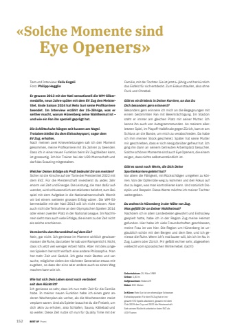 152 BEST OF BEST OF PromiText und Intervie Felix EngeliFoto: Philipp HegglinEr gewann 2013 mit der Nati sensationell die WM-Silbermedaille, neun Jahre sp%u00e4ter mit dem EV Zug den Meistertitel. Ende Saison 2024 hat Reto Suri seine Profi karriere beendet. Im Interview erz%u00e4hlt der 35-J%u00e4hrige, was er seither macht, warum H%u00fcnenberg seine Wahlheimat ist %u2013 und wie ein Fan ihn speziell gepr%u00e4gt hat.Die Schlittschuhe h%u00e4ngen seit kurzem am Nagel. Trotzdem bleibst Du dem Eishockeysport, sogar dem EV Zug, erhalten.Nach meinen zwei Knieverletzungen sah ich den Moment gekommen, meine Profi karriere mit 35 Jahren zu beenden. Dass ich in einer neuen Funktion beim EV Zug bleiben kann, ist grossartig. Ich bin Trainer bei der U20-Mannschaft und darf das Scouting mitgestalten. Welcher Deiner Erfolge als Profi bedeutet Dir am meisten?Sicher ist die Kirsche auf der Torte der Meistertitel 2022 mit dem EVZ. F%u00fcr die Meisterschaft investierst du jedes Jahr enorm viel Zeit und Energie. Die Leistung, die man daf%u00fcr aufwendet, wird schlussendlich am st%u00e4rksten belohnt, zum Beispiel mit dem Aufgebot in die Nationalmannschaft. Womit wir bei einem weiteren grossen Erfolg w%u00e4ren. Die WM-Silbermedaille mit der Nati 2013 will ich nicht missen. Aber auch nicht die Teilnahme an den Olympischen Spielen 2014 oder einen zweiten Platz in der National League. Im Nachhinein sieht man auch viele Erfolge, die einem zu der Zeit nicht als solche erschienen. Vermisst Du den Nervenkitzel auf dem Eis?Nein, gar nicht. Ich geniesse im Moment wirklich gewissermassen die Ruhe, das Leben fernab vom Rampenlicht. Nicht, dass ich jetzt viel weniger Arbeit h%u00e4tte. Aber mit den j%u00fcngeren Spielern herrscht einfach eine andere Philosophie. Man hat mehr Zeit und Geduld. Ich gebe mein Bestes und versuche, m%u00f6glichst vielen der n%u00e4chsten Generation etwas mitzugeben, so dass der eine oder andere auch so einen Weg machen kann wie ich. Wie hat sich Dein Leben sonst noch ver%u00e4ndert seit dem R%u00fccktritt?Ich geniesse es sehr, dass ich nun mehr Zeit f%u00fcr die Familie habe. In meiner neuen Funktion habe ich einen ganz anderen Wochenplan als vorher, als die Wochenenden meist verplant waren. Und als Spieler brauchst du die Freizeit, um dich aktiv zu erholen, also Schlafen, Sauna, K%u00e4ltebad und so weiter. Diese Zeit nutze ich nun f%u00fcr Quality Time mit der Familie, mit der Tochter. Sie ist jetzt 6-j%u00e4hrig und hat k%u00fcrzlich das Eisfeld f%u00fcr sich entdeckt. Zum Eiskunstlaufen, also ohne Puck und Chnebel. Gibt es ein Erlebnis in Deiner Karriere, an das Du Dich besonders gern erinnerst?Besonders gern erinnere ich mich an die Begegnungen mit einem bestimmten Fan mit Beeintr%u00e4chtigung. Im Stadion steht er immer am gleichen Platz mit seiner Mutter. Ich kenne ihn auch von Autogrammstunden. An meinem allerletzten Spiel, im Playoff-Halbfi nale gegen Z%u00fcrich, kam er am Schluss an die Bande, um mich zu verabschieden. Da habe ich ihm meinen Stock geschenkt. Sp%u00e4ter hat seine Mutter mir geschrieben, dass er sich riesig dar%u00fcber gefreut hat. Ich ging ihn dann an seinem betreuten Arbeitsplatz besuchen. Solche sch%u00f6nen Momente sind auch Eye Openers, die einem zeigen, dass nichts selbstverst%u00e4ndlich ist.Gibt es sonst noch Werte, die Dich Deine Sportlerkarriere gelehrt hat?Vor allem die F%u00e4higkeit, mit R%u00fcckschl%u00e4gen umgehen zu k%u00f6nnen. Von der Opferrolle weg zu kommen und den Fokus auf das zu legen, was man kontrollieren kann. Und nat%u00fcrlich Disziplin und Respekt. Diese Werte m%u00f6chte ich meiner Tochter weitergeben.Du wohnst in H%u00fcnenberg in der N%u00e4he von Zug. Was gef%u00e4llt Dir an Deiner Wahlheimat?Nachdem ich in allen Landesteilen gewohnt und Eishockey gespielt hatte, habe ich in der Region Zug meine Heimat gefunden. Hier habe ich viele Freundschaften geschlossen, meine Frau ist von hier. Die Region um H%u00fcnenberg ist unglaublich sch%u00f6n mit den Bergen und dem See, und ich geniesse die Ruhe. Wenn ich%u2019s mal lauter will, bin ich im Nu in Zug, Luzern oder Z%u00fcrich. Mir gef%u00e4llt es hier sehr, abgesehen vielleicht vom sporadischen Winternebel. (lacht)Geburtsdatum: 25. M%u00e4rz 1989Gr%u00f6sse: 1,83 mAufgewachsen: Kloten ZHDebut: EHC KlotenIn K%u00fcrze: Reto Suri ist ein ehemaliger Schweizer Eishockeyspieler. F%u00fcr den EV Zug hat er insgesamt 572 Spiele absolviert, gewann mit dem Club 2019 den Cup und 2022 die Meisterschaft. Seit seinem R%u00fccktritt arbeitet er beim EVZ als U20-Trainer.%u00abSolche Momente sind Eye Openers%u00bb