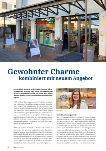 124 BEST OF BEST OF Portrait xxx LimmattalGewohnter Charme kombiniert mit neuem AngebotAus der L%u00e4ndli-Apotheke ist die Amavita Apotheke W%u00fcrenlos geworden. W%u00e4hrend noch immer die bekannten Gesichter ihrer Kundschaft mit Rat und Tat zur Seite stehen, wird das Angebot durch attraktive neue Dienstleistungen erg%u00e4nzt. 1987 er%u00f6ffnete Beat Augsburger seine Apotheke am L%u00e4ndliweg in W%u00fcrenlos. Fast 40 Jahre lang widmete der Apotheker einen grossen Teil seines Lebens dem Unternehmen und nat%u00fcrlich vor allem seiner Kundschaft. Nun ist allerdings die Zeit gekommen, altershalber etwas k%u00fcrzerzutreten. Eigentlich war es Beat Augsburgers Wunsch, die Apotheke wiederum an eine Einzelperson zu %u00fcbergeben. Die F%u00fchrung einer Apotheke ist aber mit viel Risiko und einem grossen Arbeitsaufwand verbunden, zudem m%u00fcssen die n%u00f6tigen Finanzen bereitgestellt werden %u2013 ein Wagnis, das heute kaum mehr jemand einzugehen bereit ist. Mit der %u00dcbernahme der L%u00e4ndli-Apotheke durch die Amavita konnte eine sehr gute L%u00f6sung gefunden werden. Das nahezu gesamte Team der Apotheke bleibt bestehen. Ein eindeutiges Zeichen daf%u00fcr, dass die Weiterf%u00fchrung durch die schweizweit gr%u00f6sste Apothekenkette nicht nur f%u00fcr die Kundschaft, sondern auch f%u00fcr die Mitarbeitenden eine gute Option darstellt. Nach einem Umbau konnte die Amavita Apotheke W%u00fcrenlos Mitte M%u00e4rz 2025 im frischen Gewand ihre Neuer%u00f6ffnung feiern. Breite DienstleistungspaletteNicht nur das Ladeninterieur erscheint in frischem Glanz. Die %u00dcbernahme durch die Amavita bringt noch einige weitere Neuerungen mit sich %u2013 durchwegs positive, fi ndet die aktuelle Gesch%u00e4ftsf%u00fchrerin Nicole Henz. Auch sie %u00fcbrigens ein altbekanntes Gesicht, aber dazu weiter unten mehr. %u00abWir k%u00f6nnen der Kundschaft ein attraktives Bonusprogramm bieten und unsere Dienstleistungen gehen weit %u00fcber den Verkauf von Medikamenten hinaus%u00bb, sagt Nicole Henz. So k%u00f6nnen in der Apotheke beispielsweise Hals- und Ohrenbeschwerden untersucht werden und auch bei Augenreizungen oder Magen-Darm-Beschwerden wissen die Gesundheitsspezialisten Rat. In der Amavita Apotheke werden zudem Gesundheitschecks durchgef%u00fchrt und Grippe- oder Zeckenimpfungen Nicole Henz