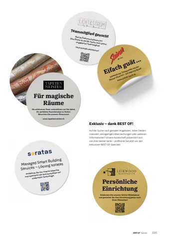 BEST OF BEST OF Specials 1352Eifach gu%u00e4t %u2026Sammeln Sie Treuepunkte mit der Steiner-Pluscard %u2013 bei jedem Einkauf!www.steiner-beck.chF%u00fcr magische R%u00e4ume Als erfahrenes Team unterst%u00fctzen wir Sie dabei, Ihr perfektes Raumkonzept zu fi nden.Besuchen Sie unseren Showroom!www.tapetenmeister.chPers%u00f6nliche Einrichtung Entdecken Sie unseren Online-M%u00f6belplaner und gestalten Sie Ihre Einrichtung genau nach Ihren W%u00fcnschen!Teammitglied gesucht Bist Du Elektroinstallateur/in? Dani Brack ist auf der Suche nach einem engagierten Teammitglied.Jetzt Kontakt aufnehmen!Managed Smart Building Services %u2013 L%u00f6sung soratasProfi tieren Sie von unserer Expertise und optimieren Sie Ihre Immobilien mit modernster Technologie.Exklusiv %u2013 dank BEST OF!Auf der Suche nach genialen Angeboten, tollen Stelleninseraten, einzigartigen %u00dcberraschungen oder weiteren Informationen? Unsere Kundschaft pr%u00e4sentiert sich von ihrer besten Seite %u2013 profi tieren Sie jetzt von den exklusiven BEST-OF-Specials!
