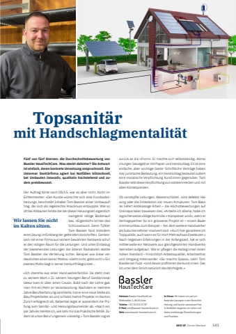 BEST OFBEST OF Z%u00fcrcher Oberland Portrait xxx 141 Topsanit%u00e4r mit Handschlagmentalit%u00e4tF%u00fcnf von f%u00fcnf Sternen: die Durchschnittsbewertung von Bassler HausTechCare. Was steckt dahinter? Die Antwort ist einfach, deren konkrete Umsetzung anspruchsvoll. Die Ustermer Sanit%u00e4rfi rma agiert bei Notf%u00e4llen blitzschnell, bei Umbauten innovativ, qualitativ hochstehend und zudem preisbewusst. Der Auftrag t%u00f6nte nach 08/15, war es aber nicht. Nicht im Entferntesten: %u00abDer Kunde w%u00fcnschte sich eine Fussbodenheizung%u00bb, beschreibt Inhaber Tom Bassler einen Umbauauftrag, der sich als regelrechte Knacknuss entpuppte. Wie so oft bei Altbauten fehlte der bei dieser Heizungsart eigentlich zwingend n%u00f6tige Bodenaufbau. %u00abEigentlich%u00bb ist hier das Schl%u00fcsselwort. Denn T%u00fcftler Tom Bassler fand trotzdem eine L%u00f6sung im Einklang der geltenden Vorschriften. Gemeinsam mit einer Firma aus seinem bew%u00e4hrten Netzwerk schuf er den n%u00f6tigen Raum f%u00fcr die Leitungen. Und unter Einbezug der bestehenden Leitungen der %u00e4lteren Radiatoren stellte Tom Bassler die Verteilung sicher. Beispiel wie diese verdeutlichen eines seiner Mottos: %u00abGeht nicht, gibts nicht.%u00bb Ein zweites Motto liegt in seiner Herkunft begr%u00fcndet %u2026%u00abIch stamme aus einer Handwerkerfamilie. Da steht man zu seinem Wort.%u00bb Zu seinem heutigen Beruf Sanit%u00e4rinstallateur kam er %u00fcber einen Cousin. Bald nach der Lehre gab man ihm ein Mehr an Verantwortung. Nachdem er mehrere Jahre Berufserfahrung sammelte, trat er eine neue Stelle als Bau/Projektleiter an und schloss mehre Projekte im Kanton Z%u00fcrich erfolgreich ab. Nebenbei legte er ausserdem die Pr%u00fcfung zum Sanit%u00e4r- und Heizungsbaumeister ab. %u00abNach ein par Jahren merkte ich, wie sehr mir das Praktische fehlte. Zudem ist unser Beruf ungemein vielseitig.%u00bb Tom Bassler zog es zur%u00fcck an die %u00abFront%u00bb: Er machte sich selbstst%u00e4ndig. Abmachungen besiegelt er mit Papier und Handschlag. Es ist eine einfache, aber wichtige Geste: Schriftliche Vertr%u00e4ge haben klar juristische Bedeutung, ein Handschlag bedeutet zudem eine moralische Verpflichtung Kund:innen gegen%u00fcber. Tom Bassler lebt diese Verpflichtung aus vollstem Herzen und mit allen Konsequenzen.Ob verstopfte Leitungen, Wassersch%u00e4den, eine defekte Heizung oder die Installation von neuen Armaturen: Tom Bassler liefert erstklassige Arbeit %u2013 die H%u00f6chstbewertungen auf Onlineportalen beweisen dies. %u00abArbeite ich alleine, habe ich logischerweise v%u00f6llige Kontrolle.%u00bb Komplexer wirds, wenn er Vertragspartner f%u00fcr ein gr%u00f6sseres Projekt ist %u2013 einem Badezimmerumbau zum Beispiel %u2013 bei dem weitere Handwerker als Subunternehmer involviert sind. %u00abAuch hier garantiere ich Topqualit%u00e4t, auch wenn es f%u00fcr mich Mehraufwand bedeutet.%u00bb Nach negativen Erfahrungen in der Anfangszeit, hat er sich mittlerweile ein Netzwerk aus gleichgesinnten Handwerksbetrieben aufgebaut. Wie er pflegen die Kolleg:innen einen hohen Standard %u2013 hinsichtlich Arbeitsqualit%u00e4t, Arbeitsethos und Umgang miteinander. %u00abSo machts Spass%u00bb, zieht Tom Bassler ein Fazit. %u00abUnd davon profi tieren die Kund:innen. Das ist unter dem Strich nat%u00fcrlich das Wichtigste.%u00bbAdresse: Bassler HausTechCareWeiherallee 3, 8610 UsterTelefon: +41 76 534 57 87E-Mail: info@bassler-haustechcare.chWeb: www.bassler-haustechcare.chIn K%u00fcrze: Wir haben uns auf umfassende L%u00f6sungen in den Bereichen Heizung und Sanit%u00e4r spezialisiert hat. In Notf%u00e4llen reagieren wir sofort und bieten erstklassige Dienstleistungen und Produkte.Wir lassen Sie nicht im Kalten sitzen.